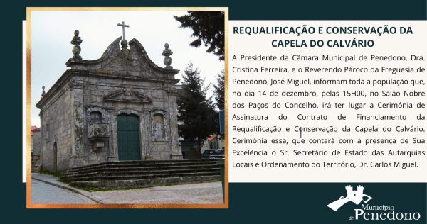 Em Informações Comentários encerrados. Assinatura do contrato de financiamento para a reabilitação e conservação da Capela do Calvário